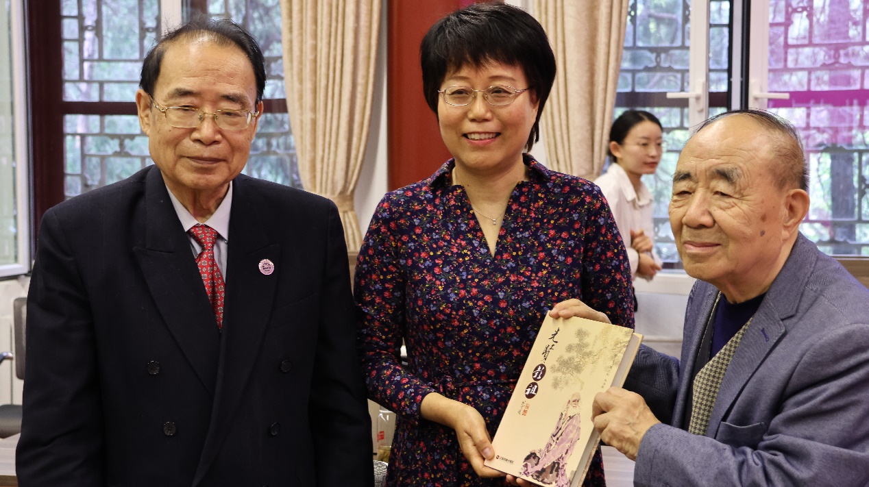 赠书环节接续祝寿仪式,外交学院杨闯教授和中国资源综合利用杂志社原主编兼副社长陈立柱分别为俄语系赠送了自己撰写或主编的著作,包括杨闯教授的《外交学》上下册、《中国的和平发展道路:历史选择与时代方向》《近代国际关系史辞典》,陈立柱原副社长主编的《梦萦未名湖》《先贤彭祖》。