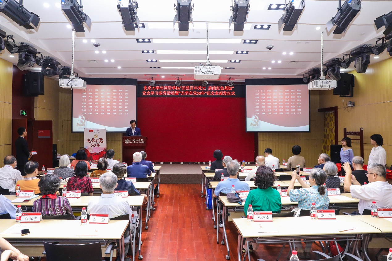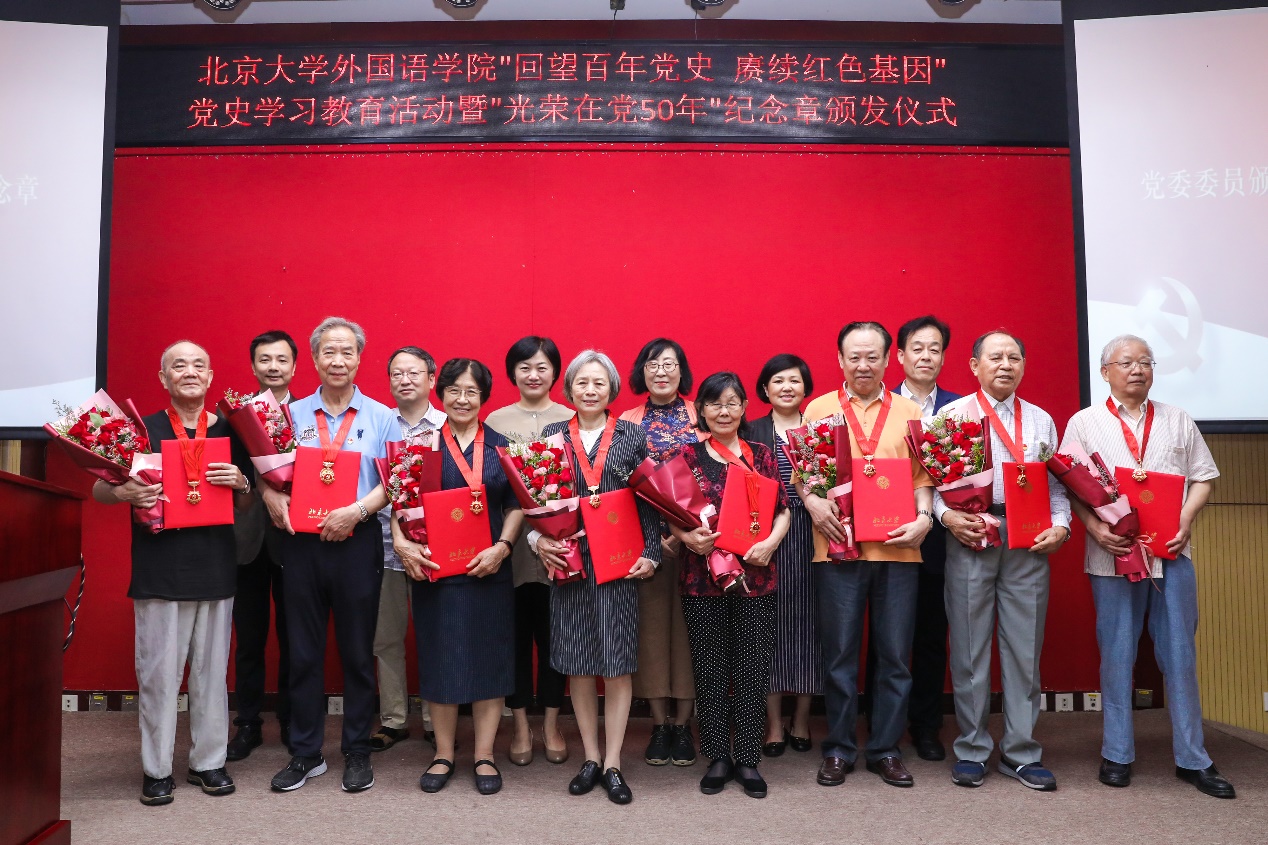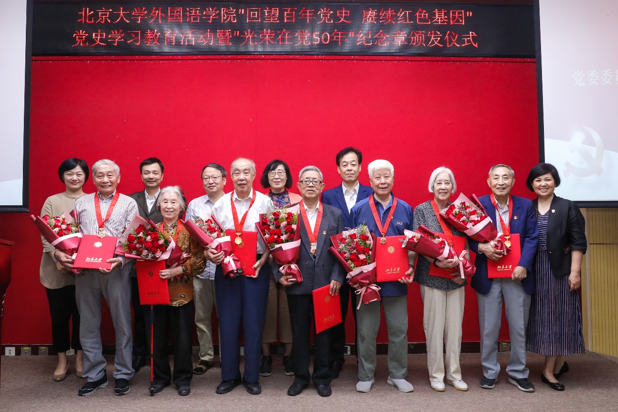 2021年6月25日上午,新利·体育,新利(中国)官方“回望百年党史 赓续红色基因”党史学习教育暨“光荣在党50年”纪念章颁发仪式在外国语学院新楼501多功能厅隆重举行。外国语学院党委委员、老党员代表、师生党员代表出席。典礼由外国语学院党委副书记宋扬主持。