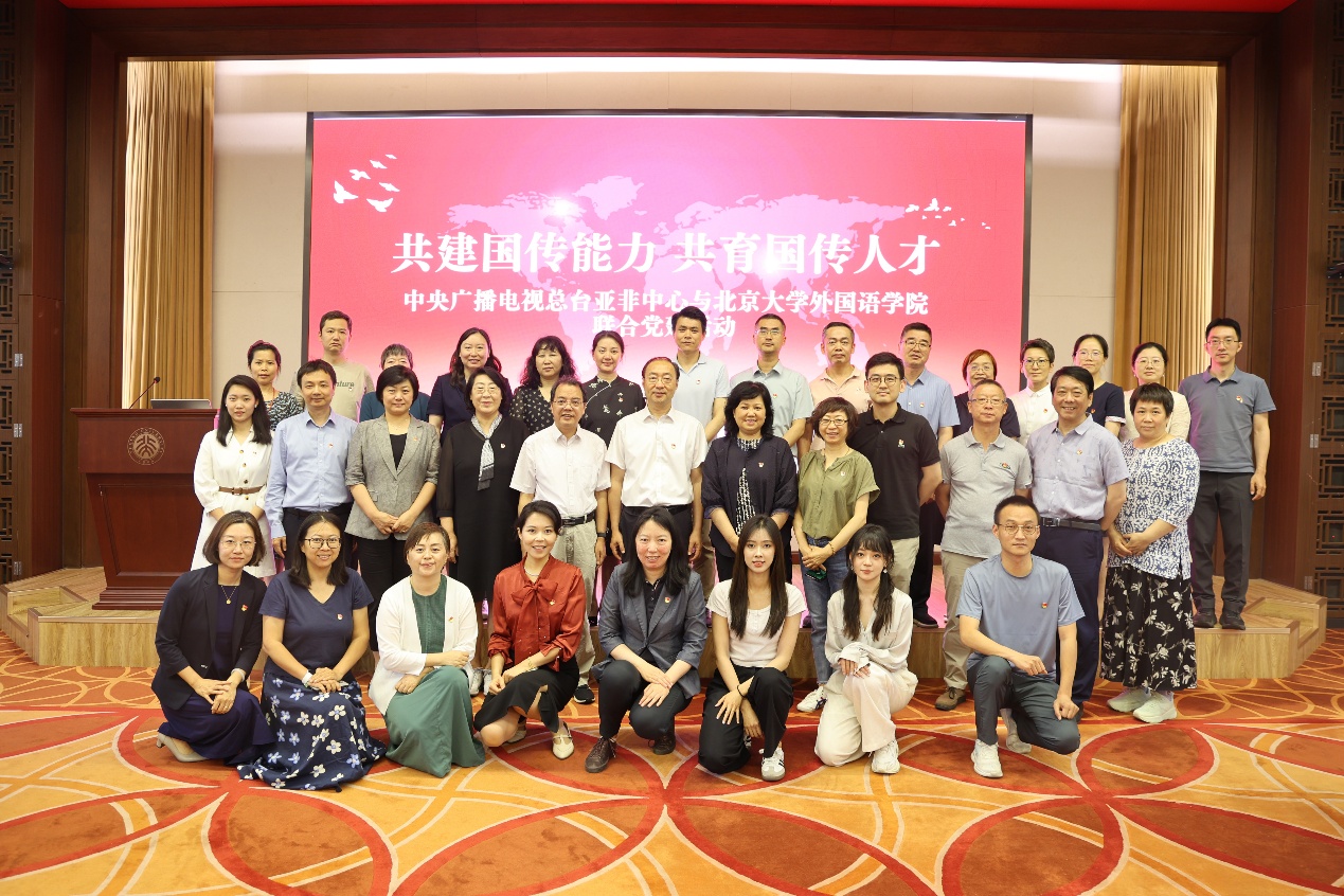 活动伊始,北大外院党委书记李淑静介绍学院在学科建设、人才培养及国际交流方面的成果。她指出,外语人才在国际传播中具有重要作用,是“讲好中国故事,传播好中国声音”的参与者和推动者。北大外院始终以服务国家战略为导向,致力于培养具有全球视野的复合型人才。两家单位以党建为基,已经开展了形式多样的联学联建,此次联合党建活动将成为双方合作新的里程碑。希望双方深化共建合作,携手共同谱写高质量发展的新篇章。随后,总台亚非中心党委书记安晓宇介绍中心情况,认为双方在“构建更有效力的国际传播体系”事业中有着广阔的合作空间。他强调,此次联学联建既是一次重温党史的机会,也是两家单位践行以高质量党建促进高质量发展的具体举措,也将成为双方共同提升国际传播能力建设的重要开端。希望以此次启动合作机制为契机,构建央媒与高校协同合作的新模式,共建国传能力,共育国传人才。