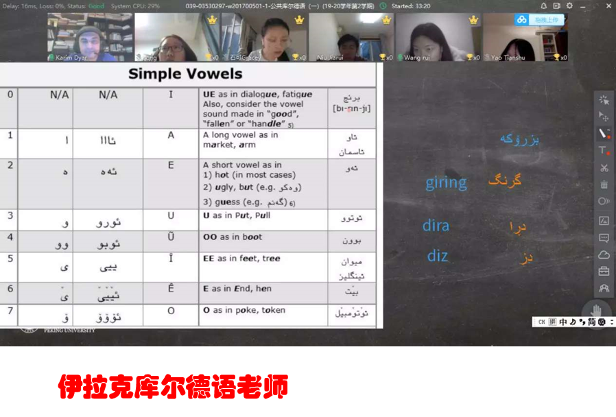 外国语学院有外籍教师41人,多位外教和外聘教师因疫情限制无法返京,在海外各地与北京有时差。学院积极联络外籍教师,为承担46门本科生课程、17门研究生课程的外教和外聘教师开通了教学网帐号,使得身处海外的外籍教师能够在国内助教的配合下正常教学。