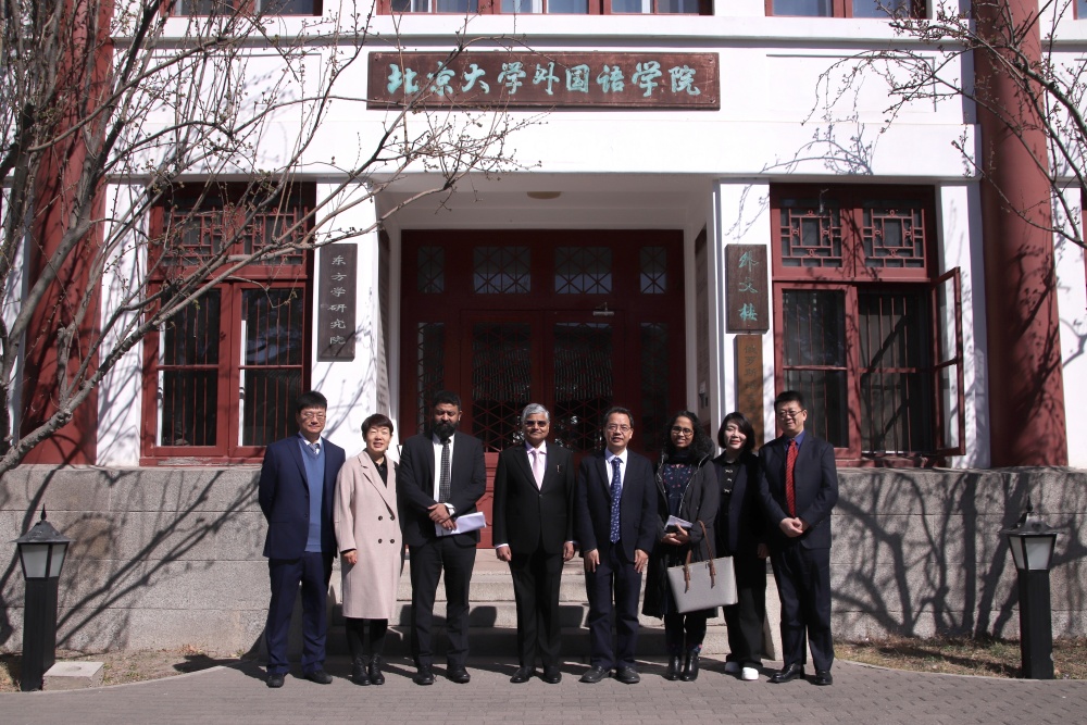 3月18日上午,印度驻华大使罗国栋(Pradeep Kumar Rawat)一行访问北京大学。北京大学党委书记何光彩、北京大学党委副书记、副校长宁琦于临湖轩会见来宾。双方就中印人文交流、高等教育合作、学科共建等议题开展会谈。印度驻华大使馆政务、新闻与科技参赞卡提克·古鲁纳坦·艾尔(Karthik Gurunathan Iyer)与文化处一秘李沐恩(Neethu Rajan)陪同来访,新利·体育,新利(中国)官方党委书记李淑静、外国语学院院长、印度研究中心主任陈明、国际合作部副部长崔喆、外国语学院南亚学系系主任萨尔吉、南亚学系副系主任姜永红、南亚学系印地语教研室主任王靖、外国语学院国别和区域研究专业助理教授、印度研究中心主任助理张忞煜陪同会见。