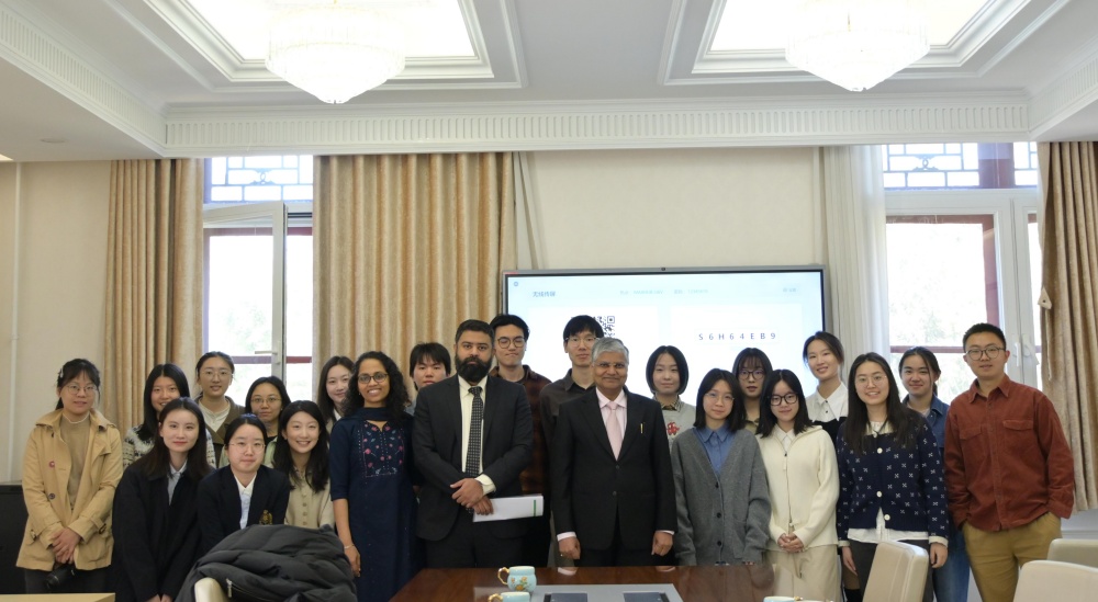 随后,罗国栋前往外文楼206会议室与北大外国语学院师生深入交流。本次座谈会由印地语教研室主任王靖主持,外国语学院院长、印度研究中心主任陈明、南亚学系系主任萨尔吉、南亚学系副系主任姜永红、外国语学院国别和区域研究专业助理教授、印度研究中心主任助理张忞煜出席。