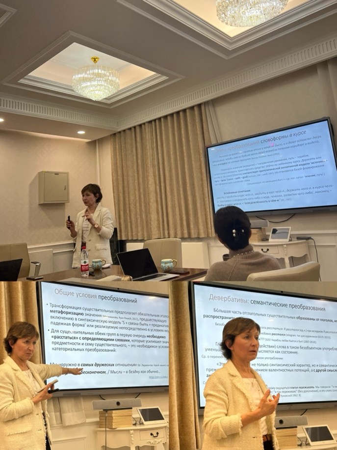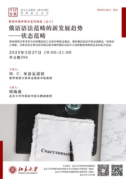 讲座聚焦俄语语法体系中具有前沿性的“状态范畴”研究。米洛瓦诺娃教授以状态范畴的经典定义切入,通过构建传统语法模型与当代新型句法结构的对比框架,系统阐释了状态意义在俄语句法层面的表征嬗变。基于对经典案例的微观历时分析,其研究不仅揭示了名词向状态范畴转化的机制,更通过跨时期语料对比,深度解析了句法结构与语义扩展之间的动态关联。这种对语言过渡性现象的系统性考察,为语言类型学视角下的形式—功能互动研究提供了重要范式参考。