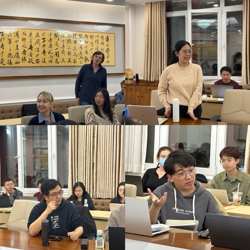 互动环节中,现场师生就俄语评价性结构的同形异义问题、语言演变的驱动因素、隐喻化过程的实现路径等学术热点提问,与米洛瓦诺娃教授展开深入探讨。米洛瓦诺娃教授对提问者展现的学术洞察力给予高度评价,特别赞赏了北大青年学子的理论素养与跨文化思辨能力。周海燕老师在总结致辞中指出,当前俄语学界对过渡性语言现象的研究方兴未艾,期待更多青年研究者投身这一充满学术潜力的领域。